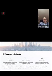 Durante su intervención, el conferencista compartió sus valiosas experiencias personales y profesionales, resaltando cómo la inclusión y la accesibilidad deben ser pilares fundamentales en el desarrollo de las Smart Cities, donde la tecnología y la ingeniería no solo transforman infraestructuras, sino también vidas.