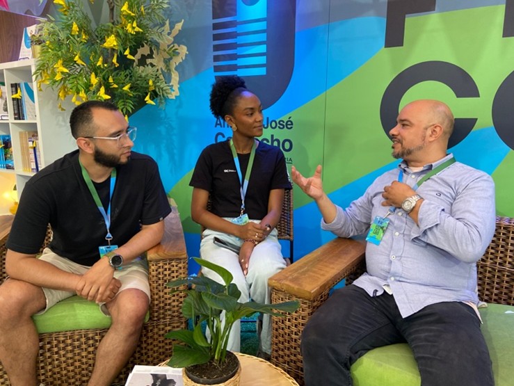 Durante la feria se realizan entrevistas a invitados especiales y a autores de UniCamacho, creando un escenario para el diálogo, la difusión del conocimiento y el fortalecimiento de la cultura académica.