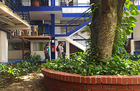 El campus de la UNIAJC reúne gran diversidad de especies de flora presente en árboles de monumental belleza como el `tulipán africano´, el `guayacán´ agente de hermosas flores de color amarillo y lila, el `tambor´ y la `ceiba´, árbol de gran envergadura que puede alcanzar hasta 25 metros de altura.
